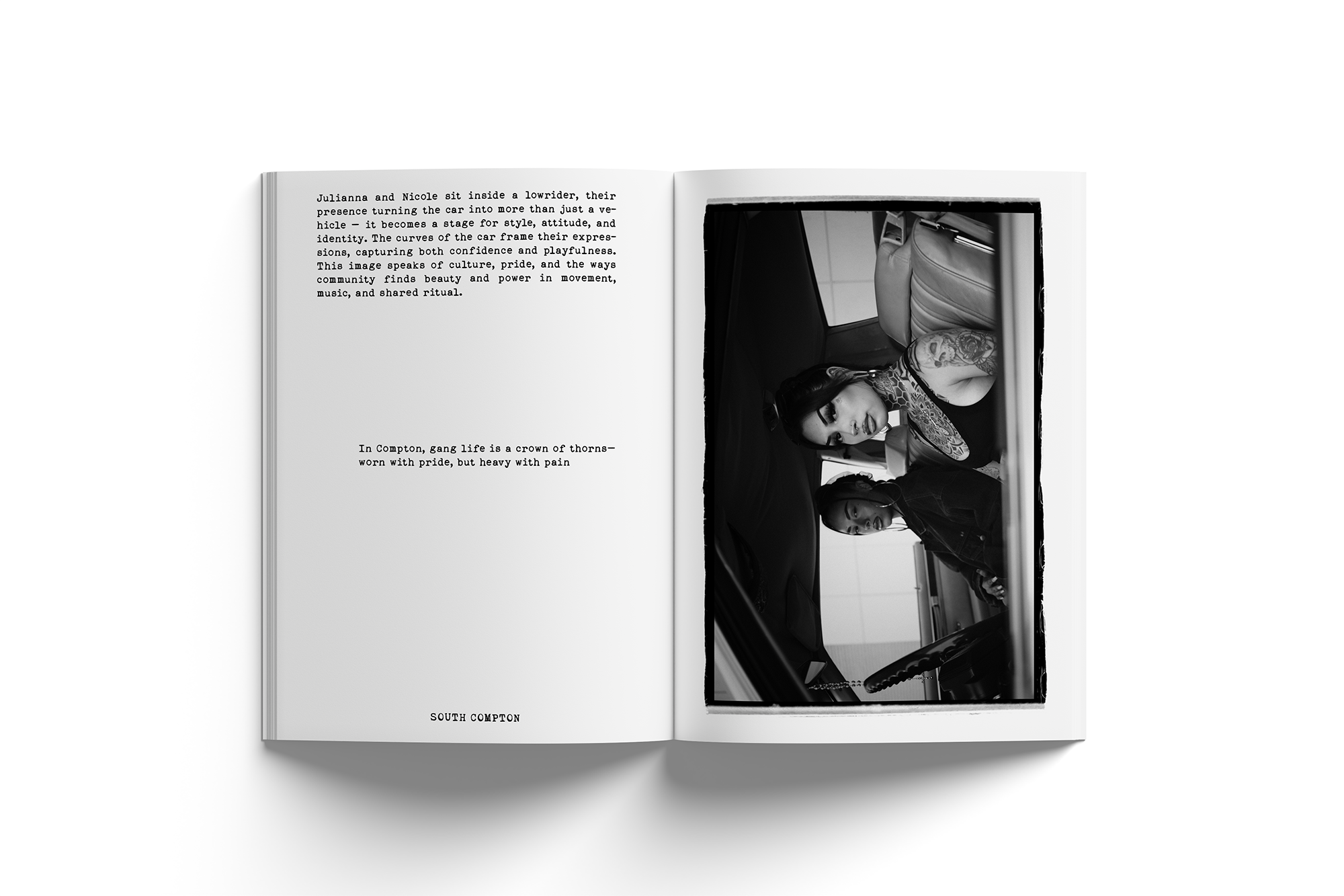 This monograph moves beyond the cinematic façade commonly associated with Los Angeles, immersing the viewer in neighborhoods shaped by resilience, labor, and survival. Streets become stages for everyday realities: moments of solitude, exchanges between communities, traces of economic disparity, and the constant negotiation of space. Rather than framing the city through glamour, the work focuses on the lived experience of those who form its backbone.